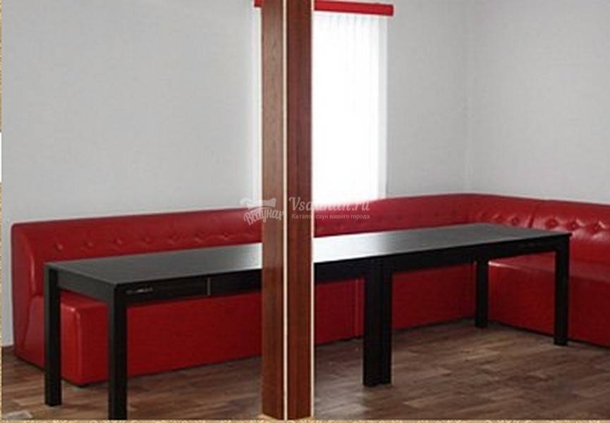 Зайдя в помещение, вы попадаете на первый этаж. Здесь находится обширный зал для проведения пиршеств и банкетов. Диваны сделаны из кожи, есть телевизор, музыка, караоке, и цветомузыка. Также есть кухня, на которой вы найдете все необходимое для себя.